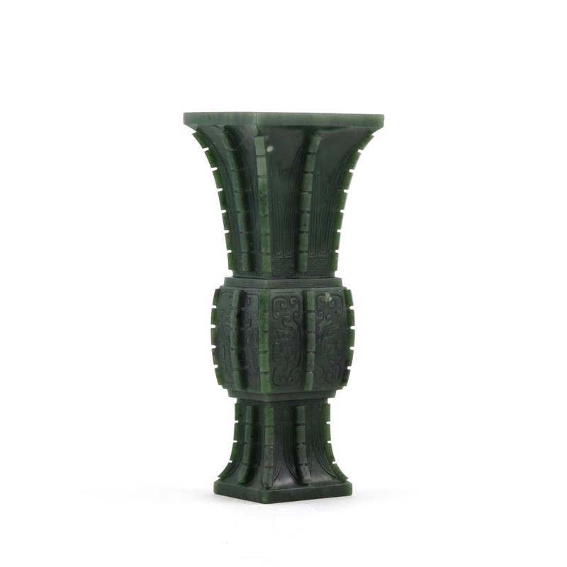 *A good Chinese spinach-green jade archaistic vase fang-gu 18th century