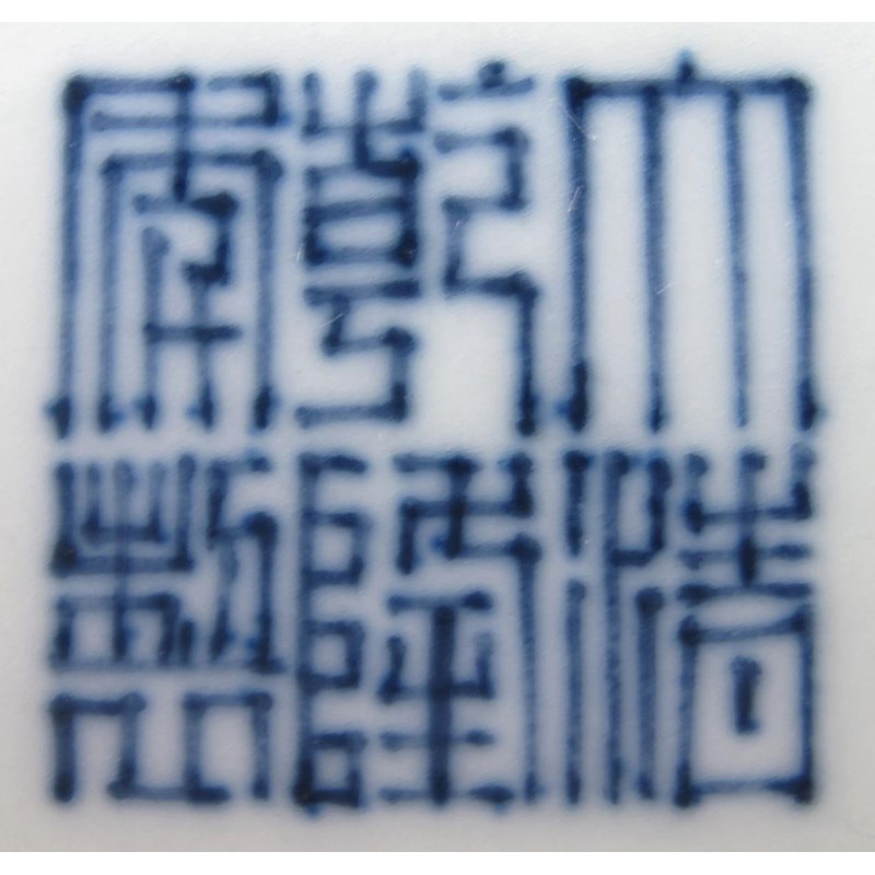 A Chinese blue and white low footed dish Qianlong seal mark and probably of the period