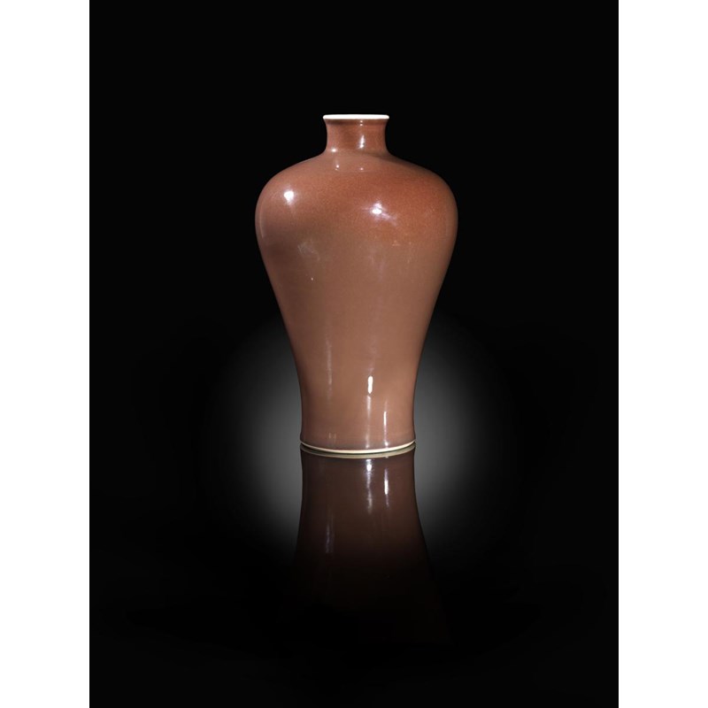 A Chinese monochrome meiping Qianlong four character seal mark and probably of the period, decorated with an even copper-red glaze beneath a white rim, 29.4cm.