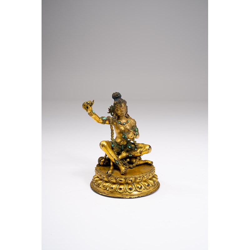 A TIBETAN GILT-BRONZE SEATED FIGURE OF A DAKINI
