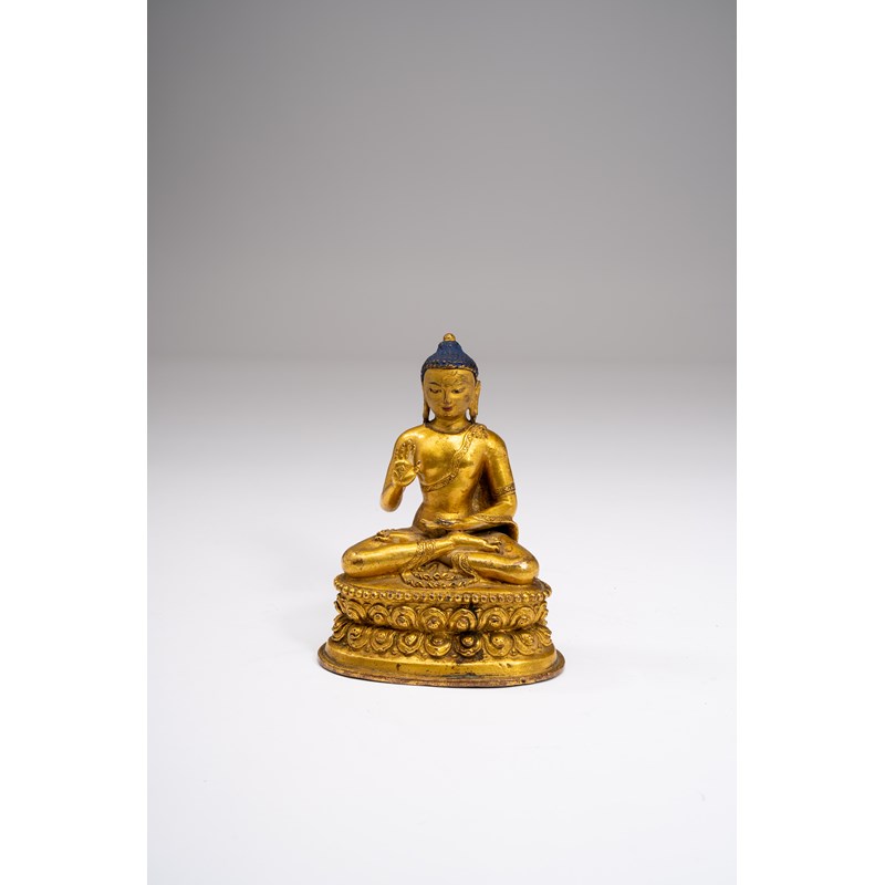 A CHINESE GILT-BRONZE SEATED FIGURE OF BUDDHA