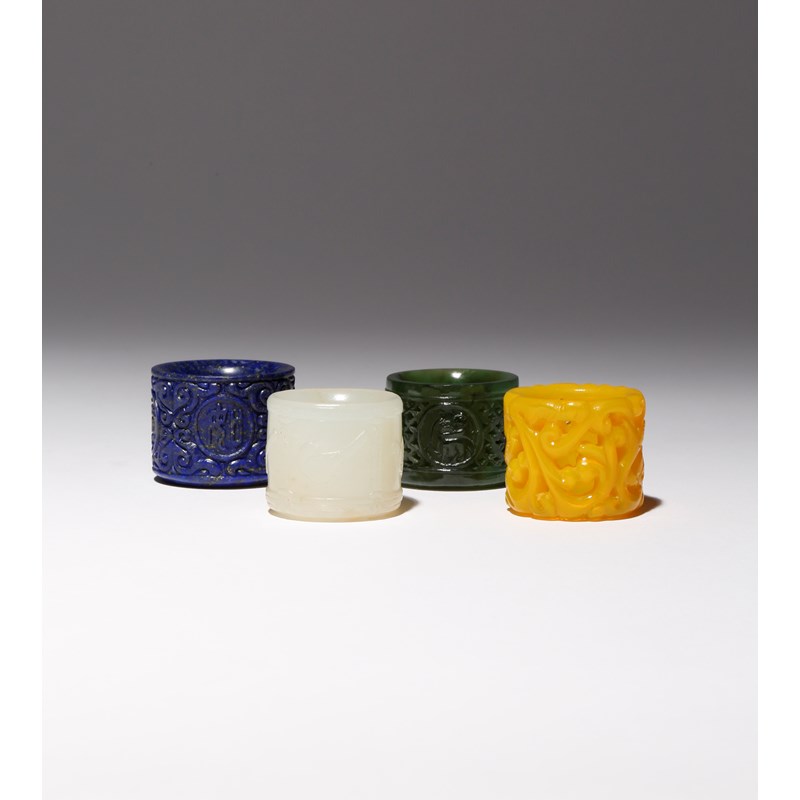 十八世紀 白玉、碧玉、青金、黃料扳指 四件