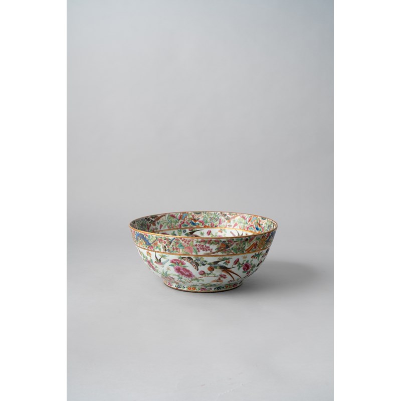 A CHINESE CANTON FAMILLE ROSE 'ROMANCE OF THE WESTERN CHAMBER' PUNCH BOWL