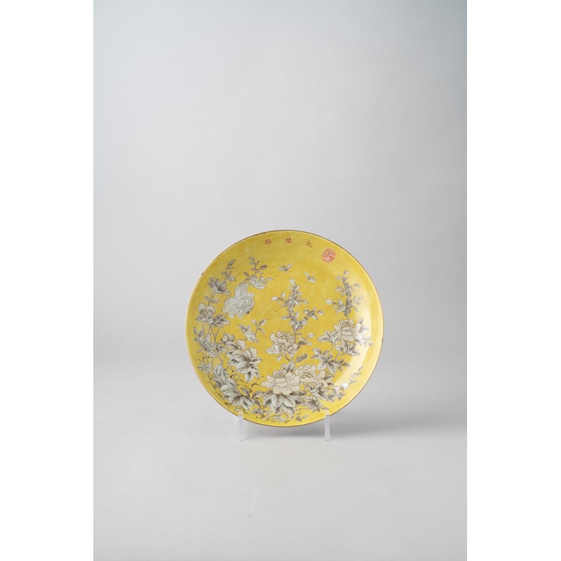 A CHINESE EN GRISAILLE AND YELLOW-GROUND DAYAZHAI DISH
