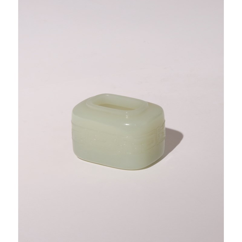 A CHINESE PALE CELADON JADE RECTANGULAR WATERPOT