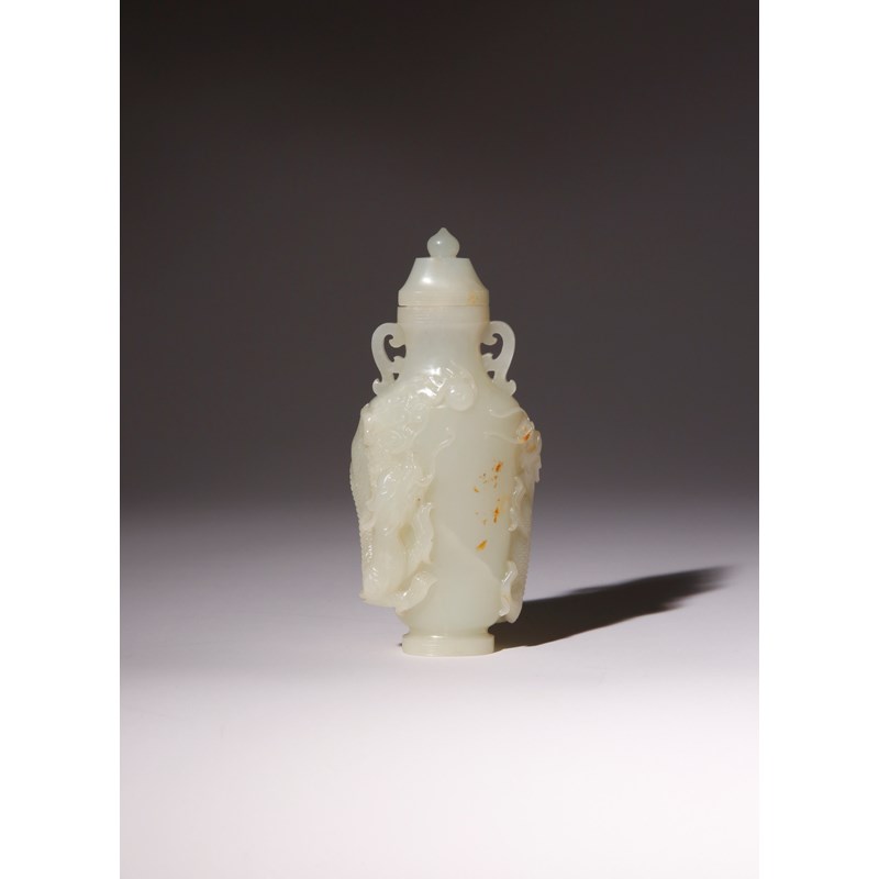 A CHINESE PALE CELADON JADE VASE AND COVER