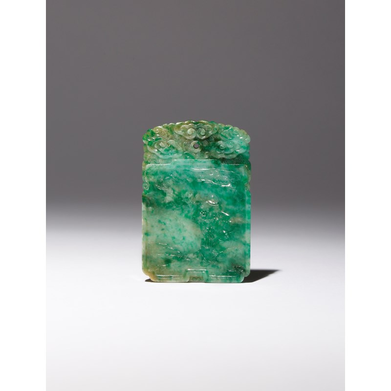 A CHINESE APPLE GREEN JADEITE PENDANT
