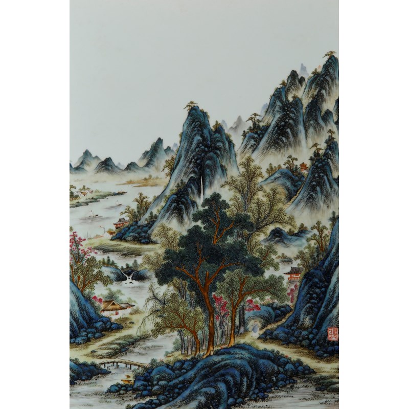 A CHINESE FAMILLE ROSE 'LANDSCAPE' PLAQUE