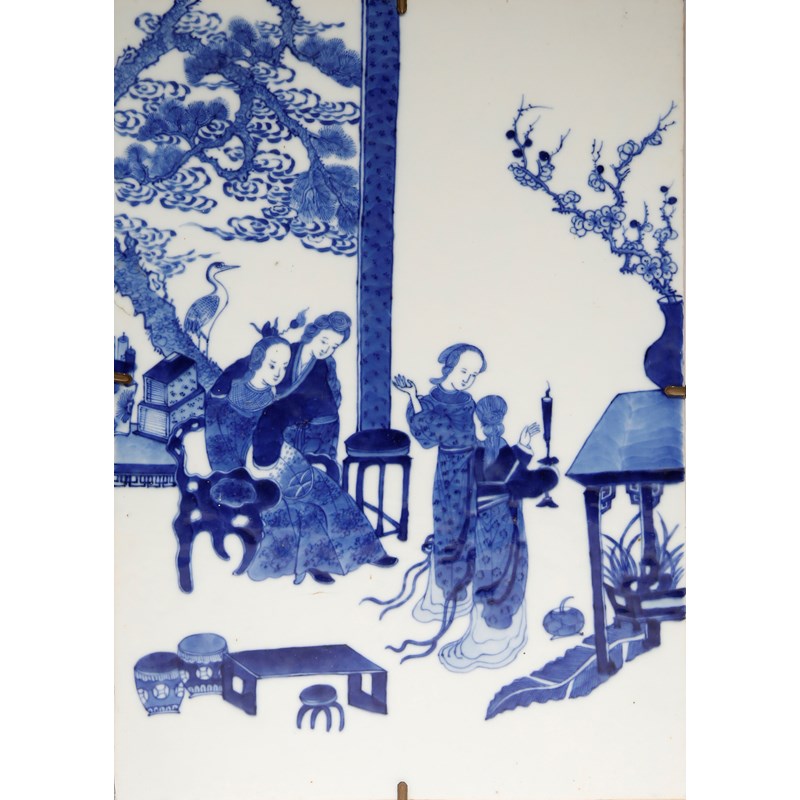 A CHINESE BLUE AND WHITE 'STORY OF THE RED CHAMBER' PLAQUE