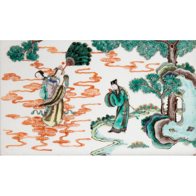 A CHINESE FAMILLE VERTE RECTANGULAR PLAQUE