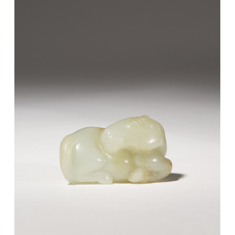A CHINESE CELADON JADE CARVING OF A HORSE