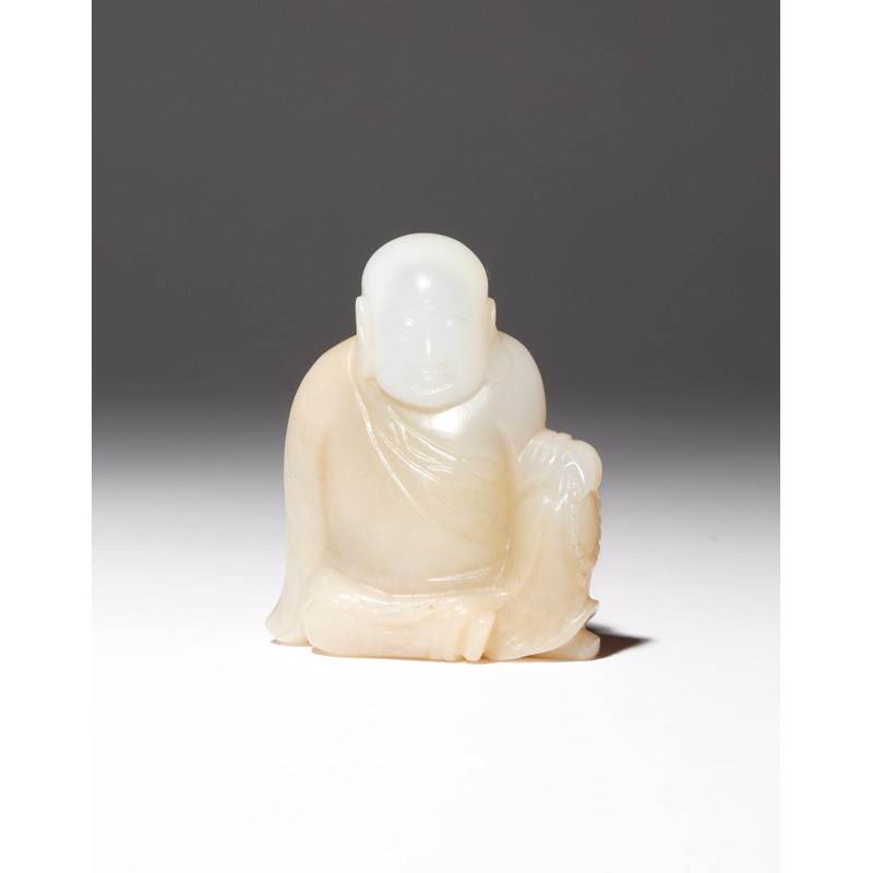 A CHINESE WHITE JADE CARVING OF A LUOHAN