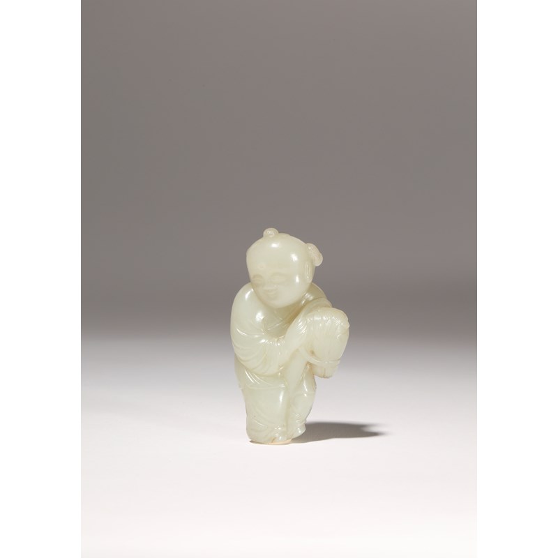 A CHINESE PALE CELADON JADE 'BOY' PENDANT