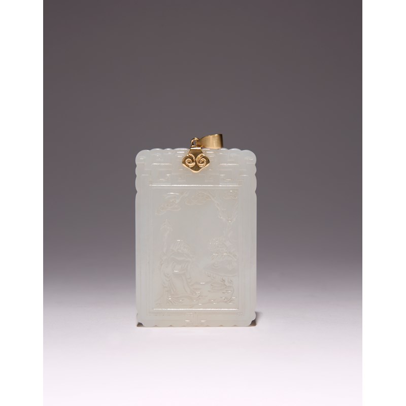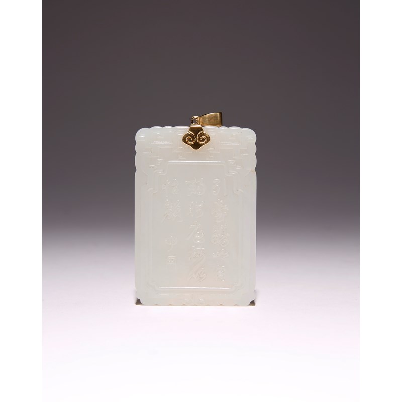 A CHINESE WHITE JADE 'ZI GANG' RECTANGULAR PENDANT