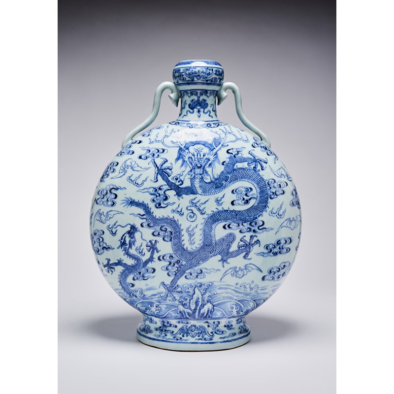 A MASSIVE CHINESE BLUE AND WHITE 'DRAGON' MOONFLASK