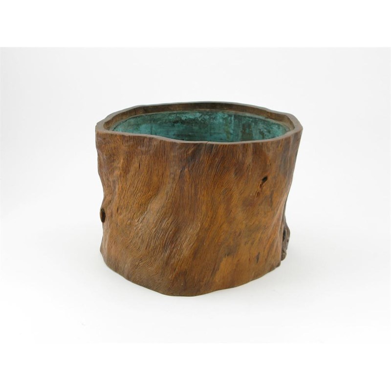 A large brush pot or jardinière, formed from a hollowed tree trunk, with a removable metal liner, 33cm dia.