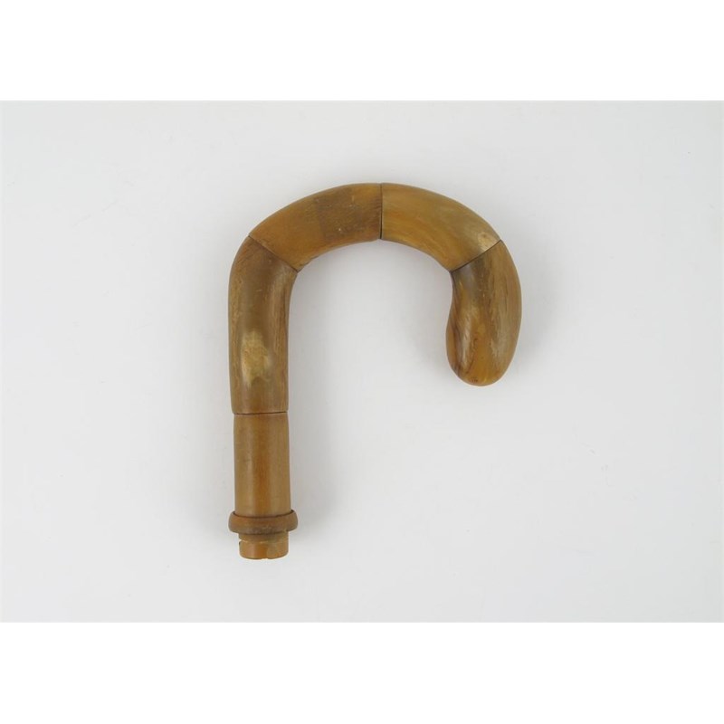 A horn umbrella or cane handle, probably Indian, c.1900, worm damage, 15cm.