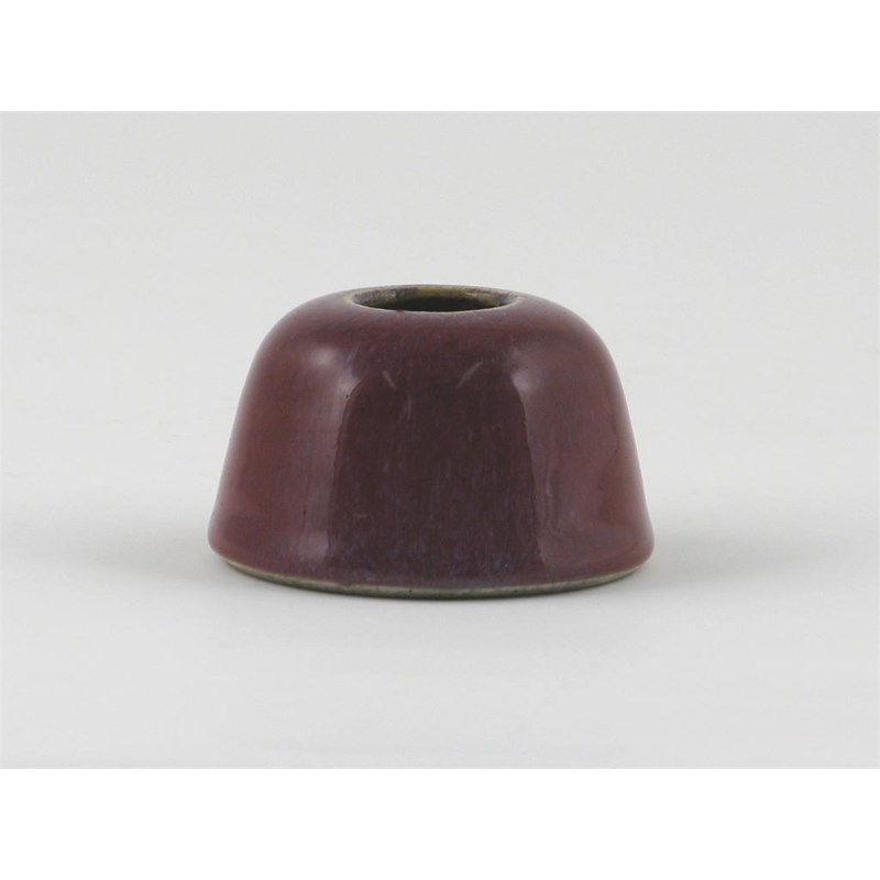 A Chinese flambé glazed ink pot, the glaze with violet flecks, 19th century, 17cm dia.