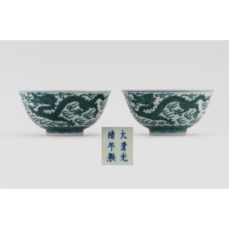A pair of Chinese dragon bowls