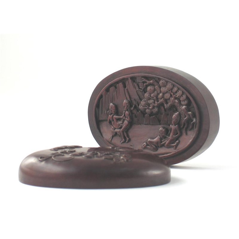 Erotic interest: a Chinese hardwood oval box and cover