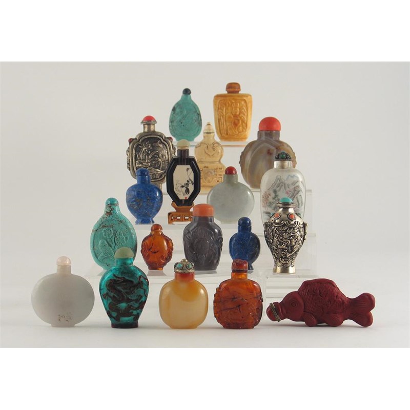 Fifty one Chinese snuff bottles, in ivory, hardstone, and other materials. (51)