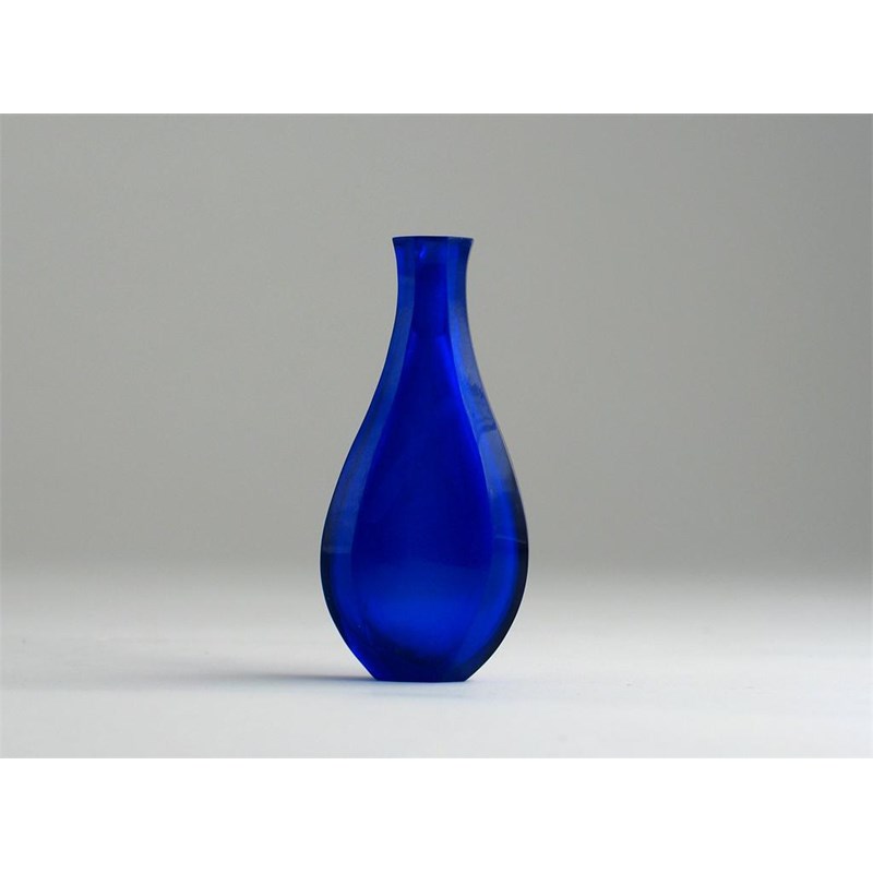 A rare Chinese faceted blue glass snuff bottle, of elongated form, the base with a four character Qianlong mark and of the period 1736-95. A tiny flat chip to the rim. 7.5cm.