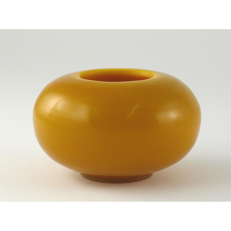 A Chinese yellow Beijing glass compressed circular vase