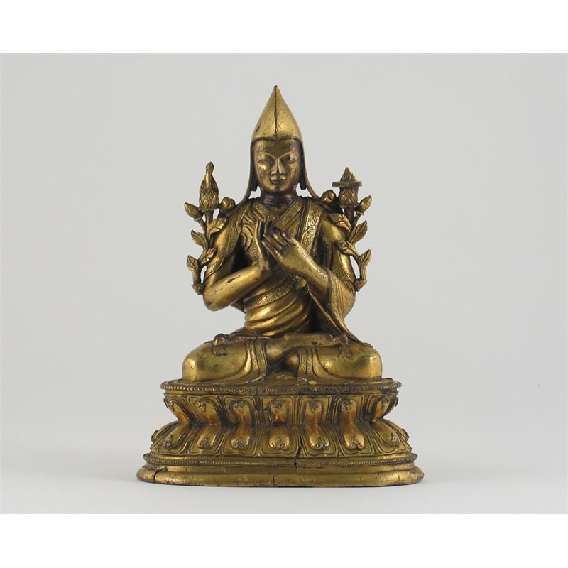A Tibeto-Chinese gilt bronze figure of Tsong Ka Pa