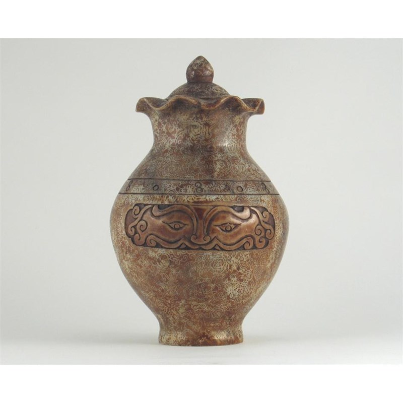 A Chinese soapstone vase and cover