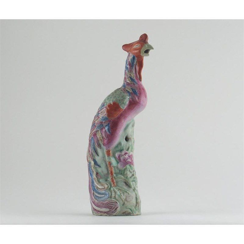 A Chinese famille rose model of a standing phoenix