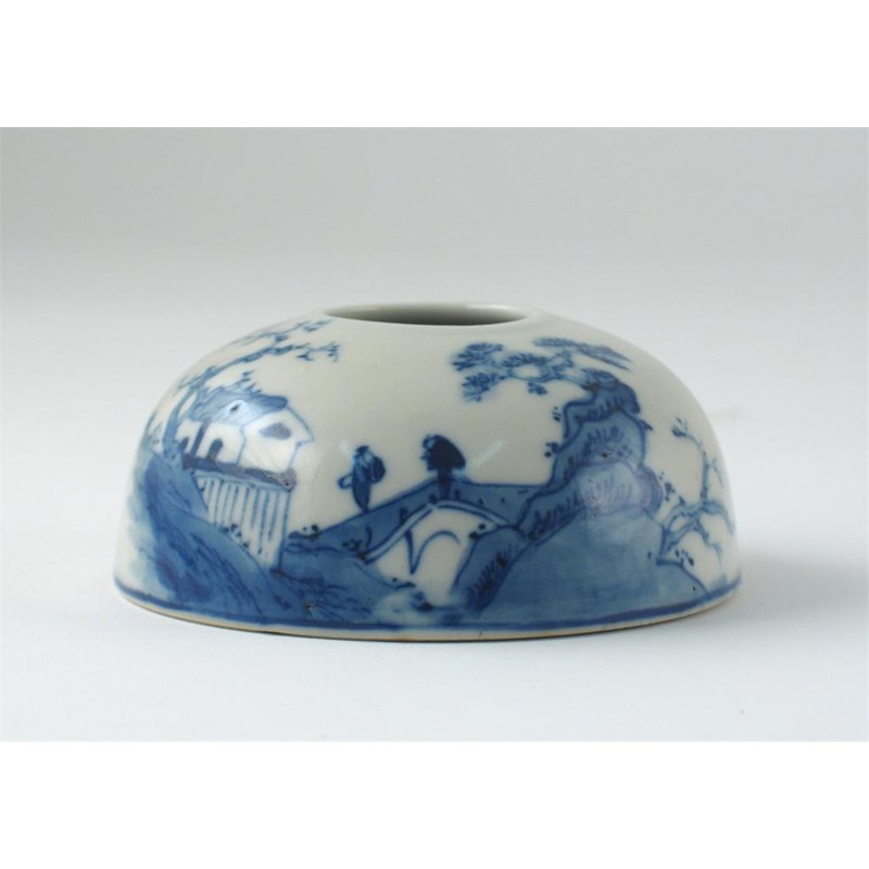 A Chinese blue and white beehive-shaped waterpot, Kangxi mark but 19th century, 9.5cm.