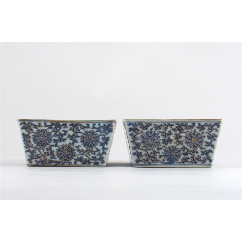 A pair of Chinese square-section flaring bowls