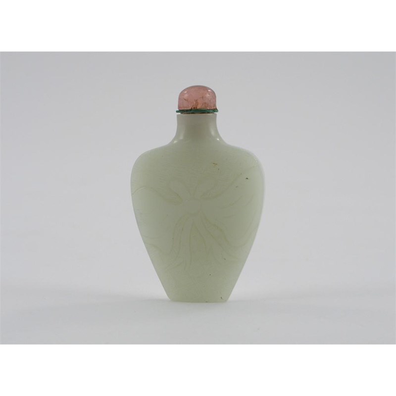 A Chinese pale celadon jade shield-shaped snuff bottle