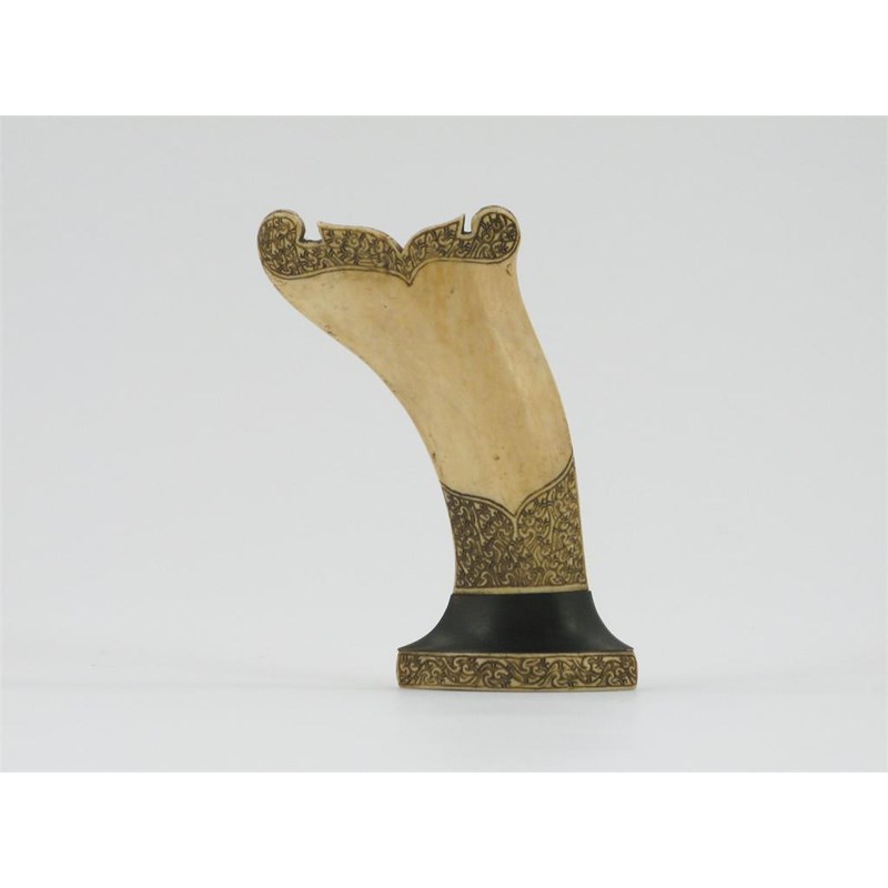 A Javanese ivory kris handle, finely carved with scrollwork, 18th / 19th century, 12.7cm.