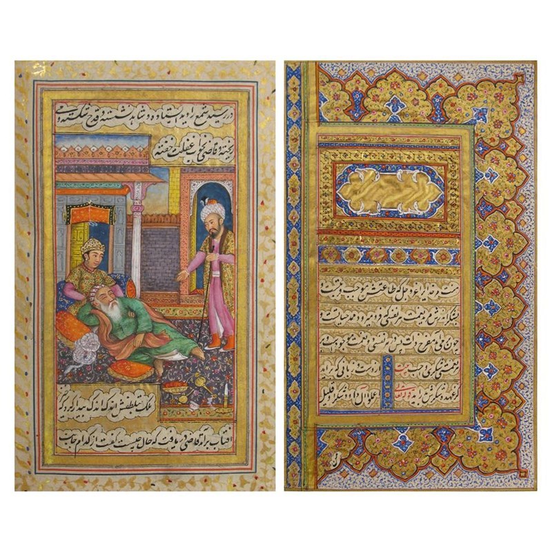 A richly illuminated Persian manuscript, Gulistan of Shaikh Saudi, containing fourteen miniature paintings, three double page, within floral borders, original morocco binding embossed in gold, colophon dating the manuscript to 1237 AH corresponding to 1821 AD.