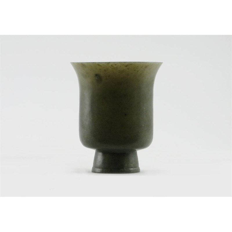 A Chinese celadon jade tall beaker, on a slightly flared foot, 17th / 18th century, 13cm high.