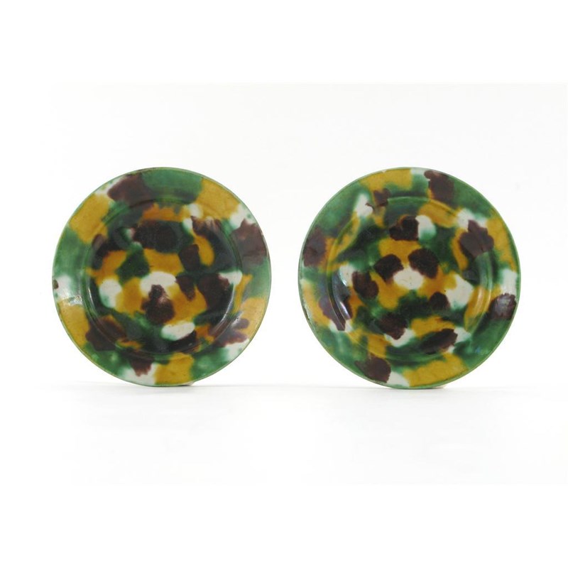 A small pair of Chinese brinjal glazed dishes