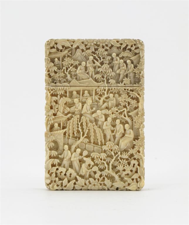A Chinese Canton carved ivory card case