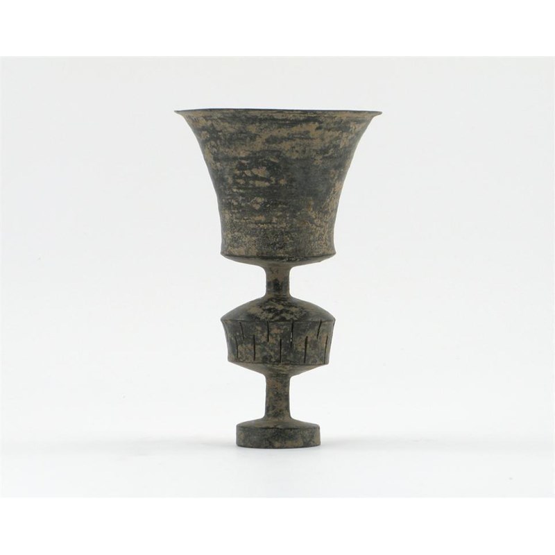 A South East Asian black lacquer libation cup, with an elaborate tall foot, possibly Korean, Silla Dynasty, 21cm.