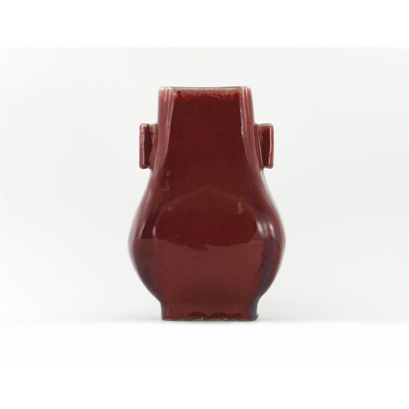 A Chinese red flambé-glazed hu-shaped vase, the base with a six character Qianlong seal mark, probably 19th century, 29.5cm.