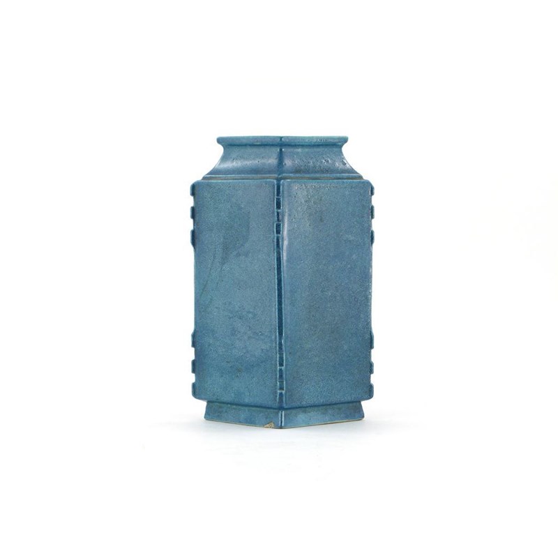 A Chinese lozenge-shaped vase, decorated with an all over robin's egg glaze, unmarked, probably 19th century, small chips around the footrim, 26.5cm.