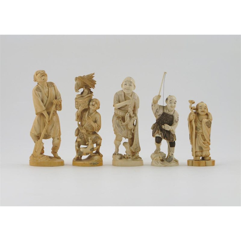 Five Japanese ivory carvings of figures