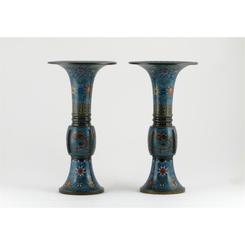 **A pair of Chinese cloisonné gu-shaped vases