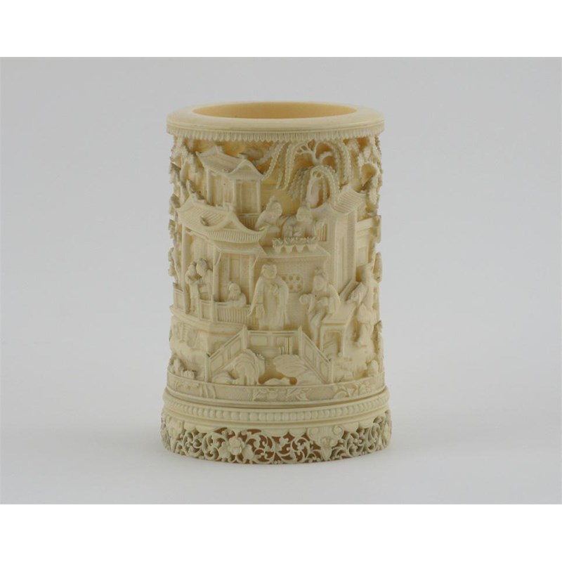 A Chinese ivory carved Canton brushpot