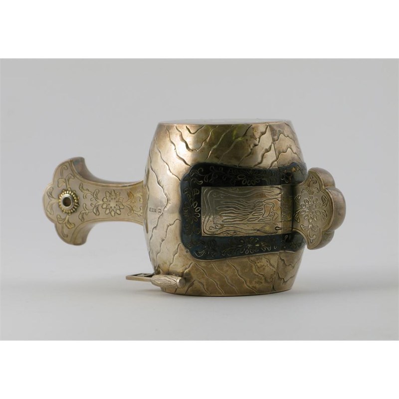 A Japanese silver box and cover, formed as a mallet, part gilded and decorated to simulate timber, 19th/20th century, 14.5cm. (2)