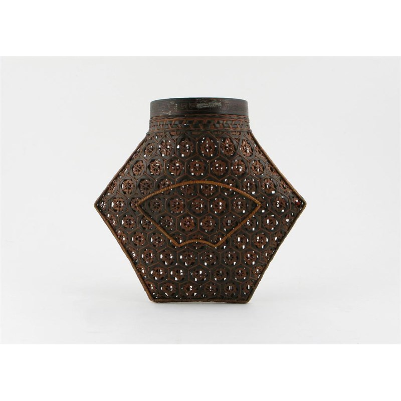 A Japanese hexagonal basket, with a fan motif to one side, 19th century, 21cm.