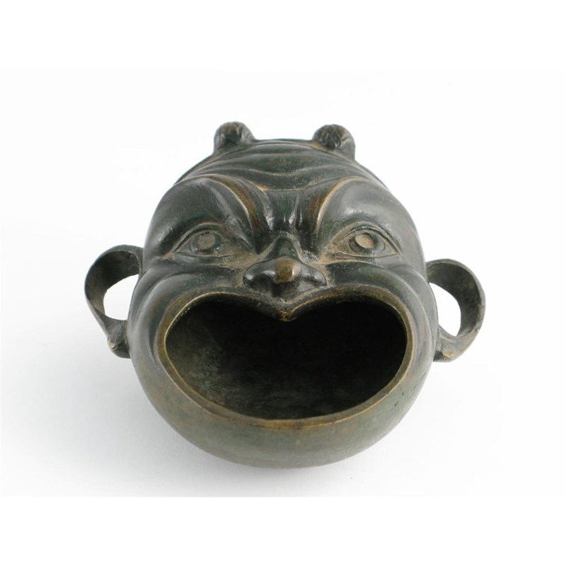 A Japanese bronze incense burner, cast as a grotesque Noh mask, 19th century, 11cm.