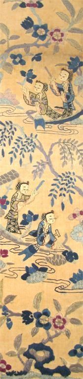 Eight Chinese embroidered panels, depicting auspicious objects, figures, flowers and fruits, all framed and glazed, 62cm max. (8)