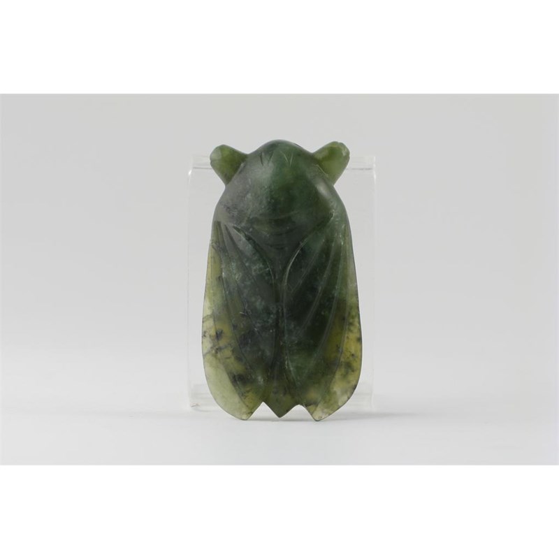 **A Chinese spinach jade model of cicada, with protuberant eyes, 5.5cm.