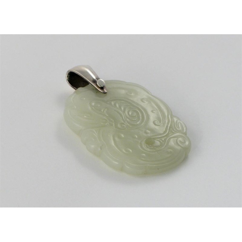A Chinese white jade pendent, carved on each side with an archaic chilong dragon, 18th/19th century, 4.7cm.